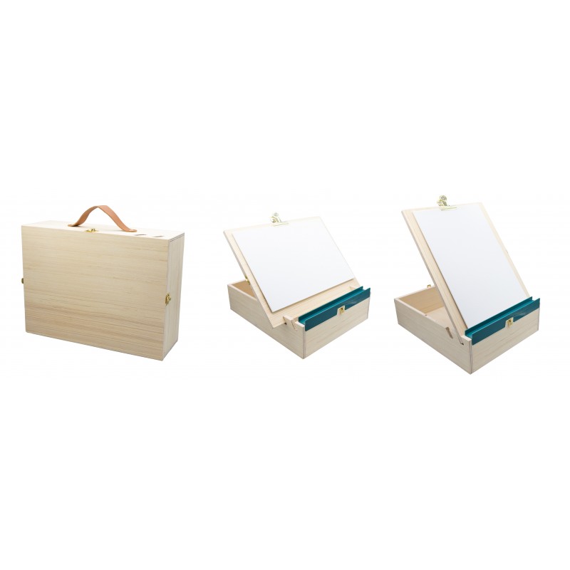 Mallette en bois, vraiment parfaite, très pratique et complète avec tous ces accessoires, les enfants se transforme en véritable petit artiste, grâce à son chevalet intégré la qualité est présente et le côté ludique est un vrai plus.