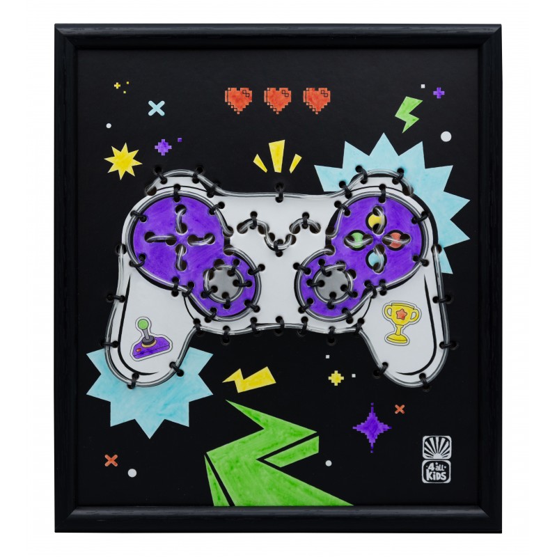 Colour in with markers, thread the neon wire through according to the diagram and place the picture in the frame.