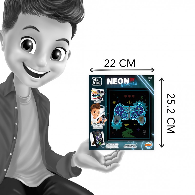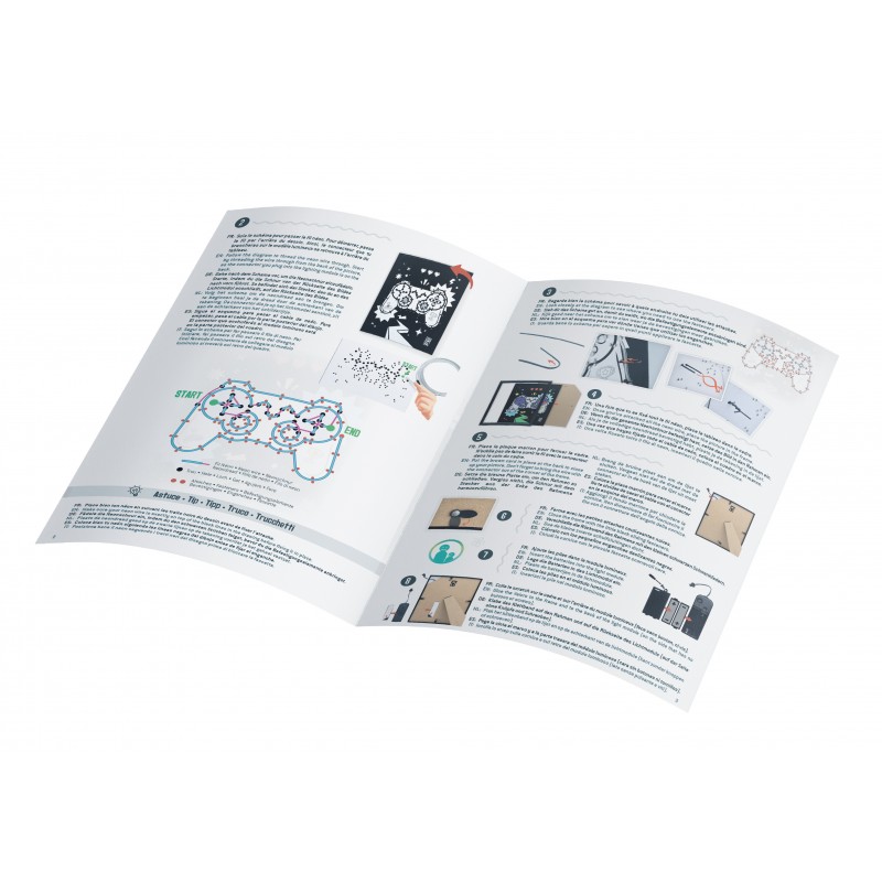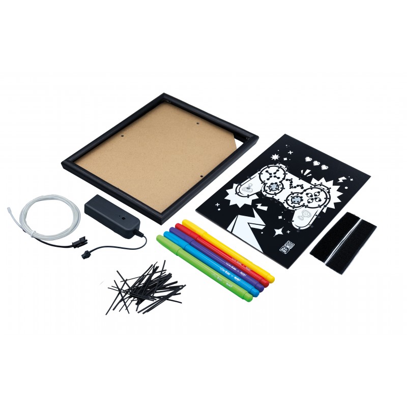 Included : picture to colour, 5 markers, lighting module, neon wire, bag of fasteners, double-sided Velcro and 1 instruction sheet.