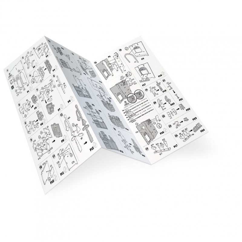Glue, cut and place the furniture, accessories, plants and customers to recreate the cosy atmosphere of a café.
