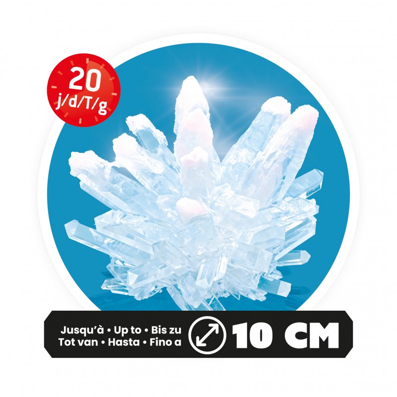 Included : pre-measured crystal powders (76 g and 370 g), growing trays (250 ml beaker and 2-litre bucket) and colour illustrated instructions.
