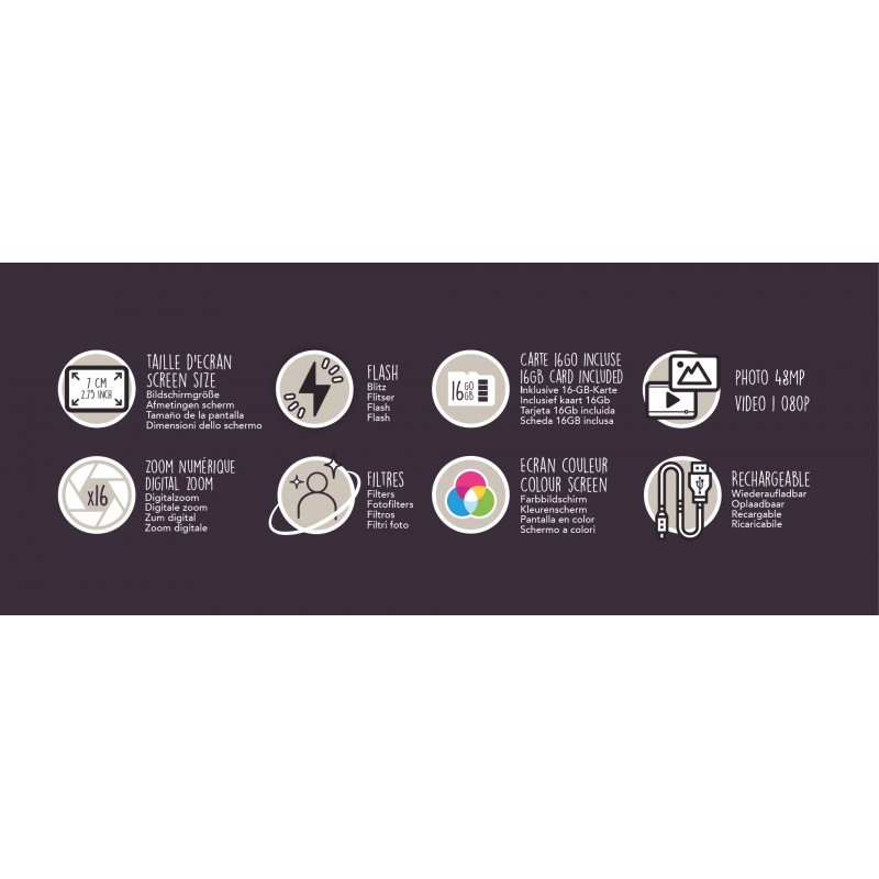 A 2-in-1 camera with a travel mode for holidays and a sport mode for filming your adventures.