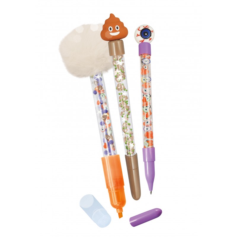 Remplis les stylos et le surligneur avec toutes les décorations puis choisis une figurine ou un pompon.