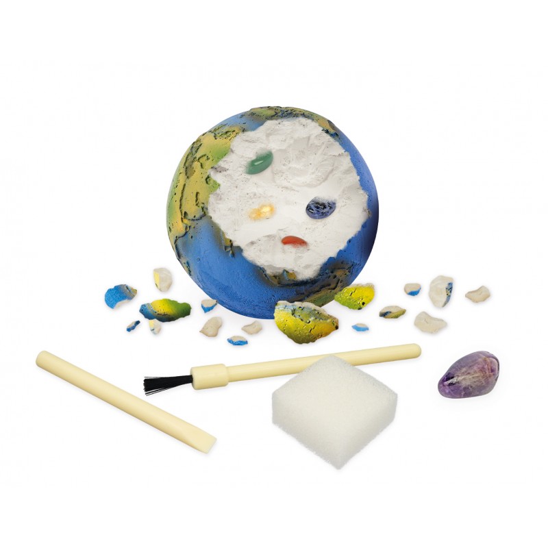 Inclus : planète Terre, 6 pierres, ciseau, pinceau, éponge et notice illustrée en couleurs.