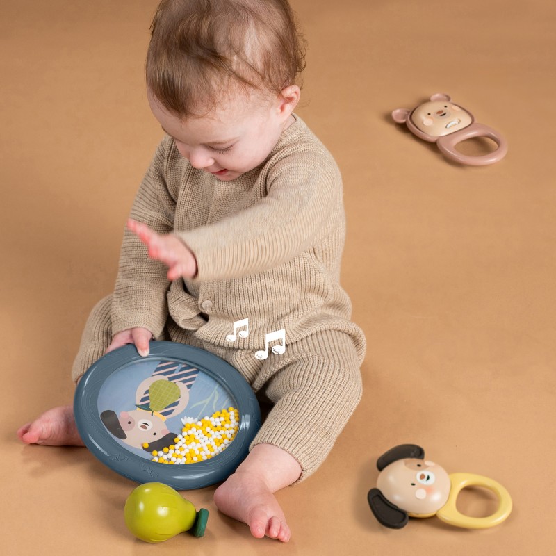 Inclus : 1 tambour, 1 maracas, 1 castagnette et 1 hochet.