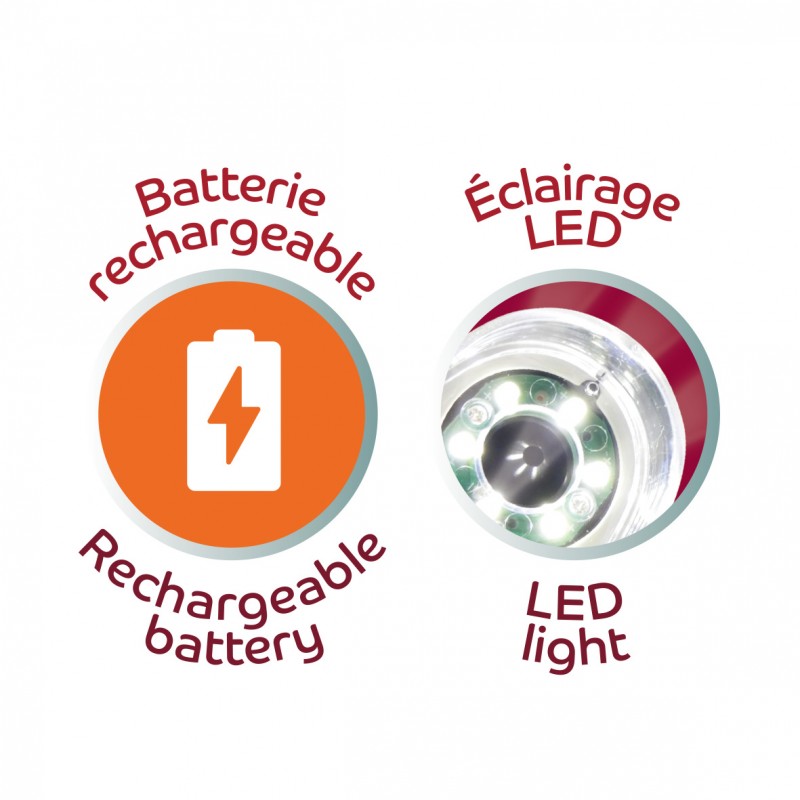 Fonctionne avec une batterie lithium incluse – Câble USB inclus.